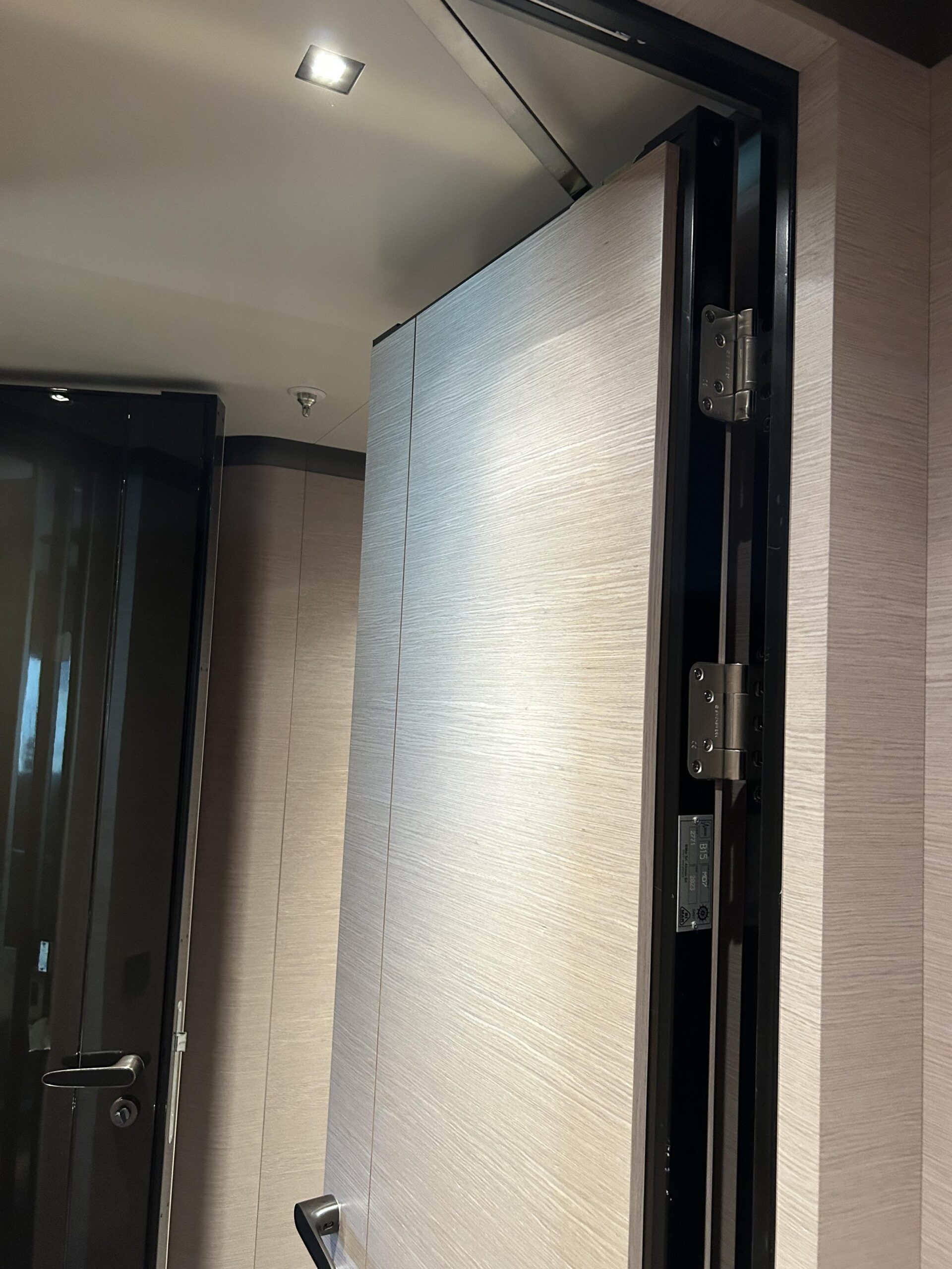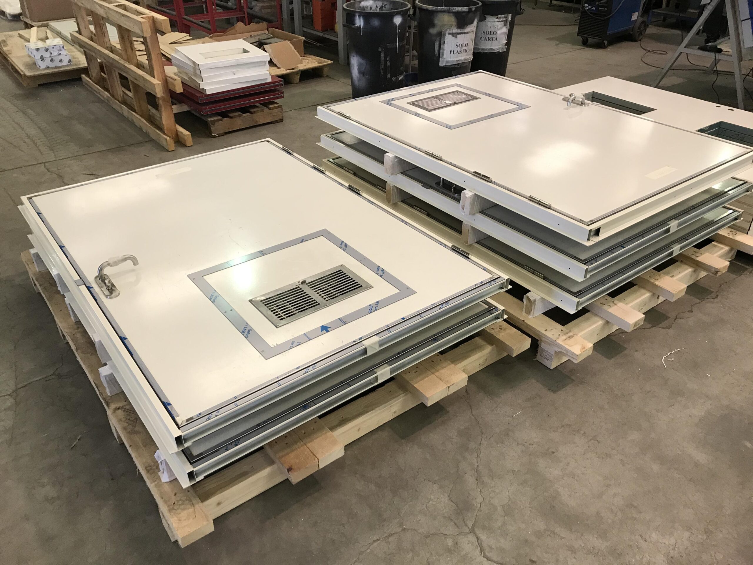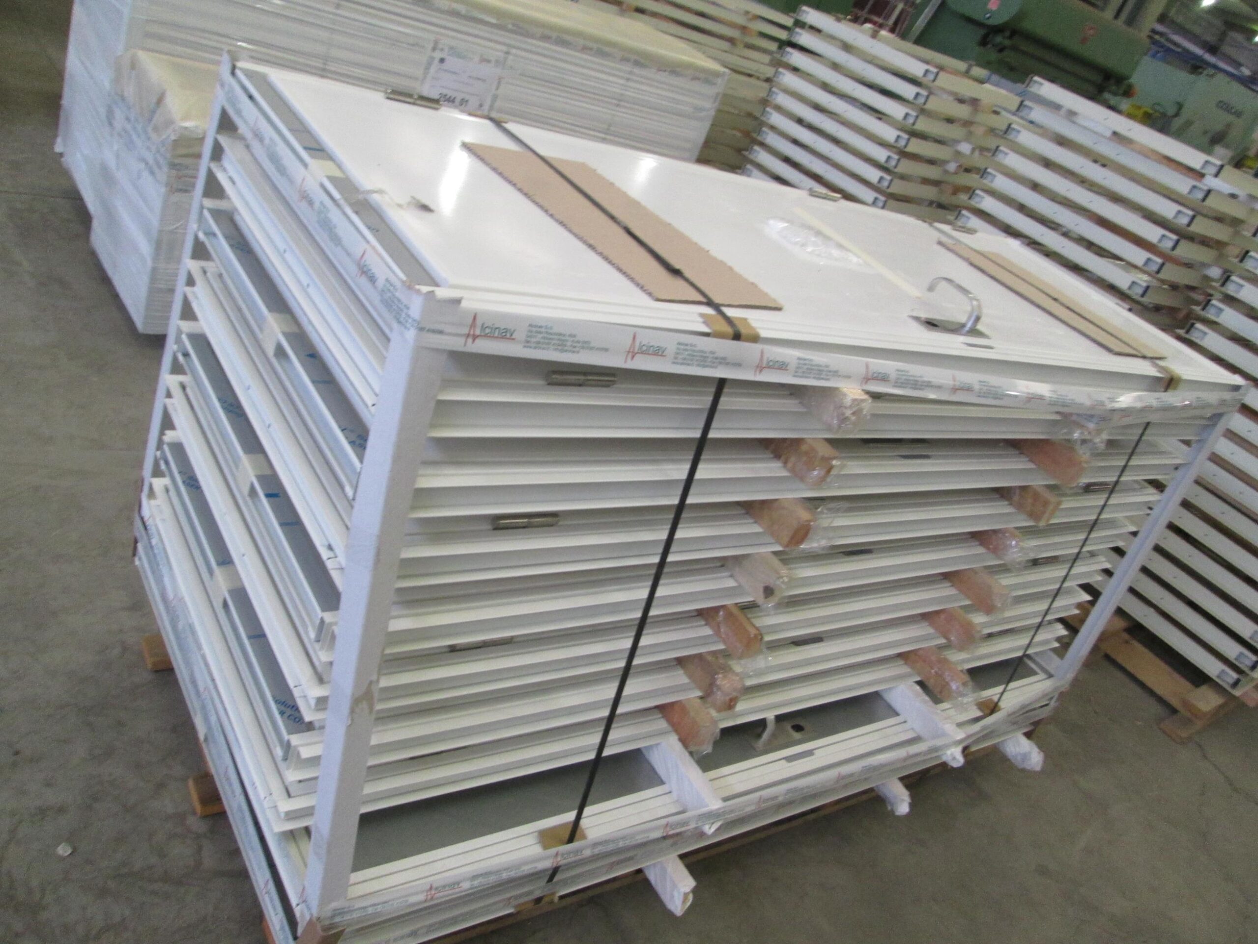 B15 rated class single leaf hinged door; construction type sandwich steel foils/ rock wool. Available finishing: PVC pre-coated foil – Painted steel foils. Door suitable for cladding with wood finiture.Hidden door closer.Hidden hinges.